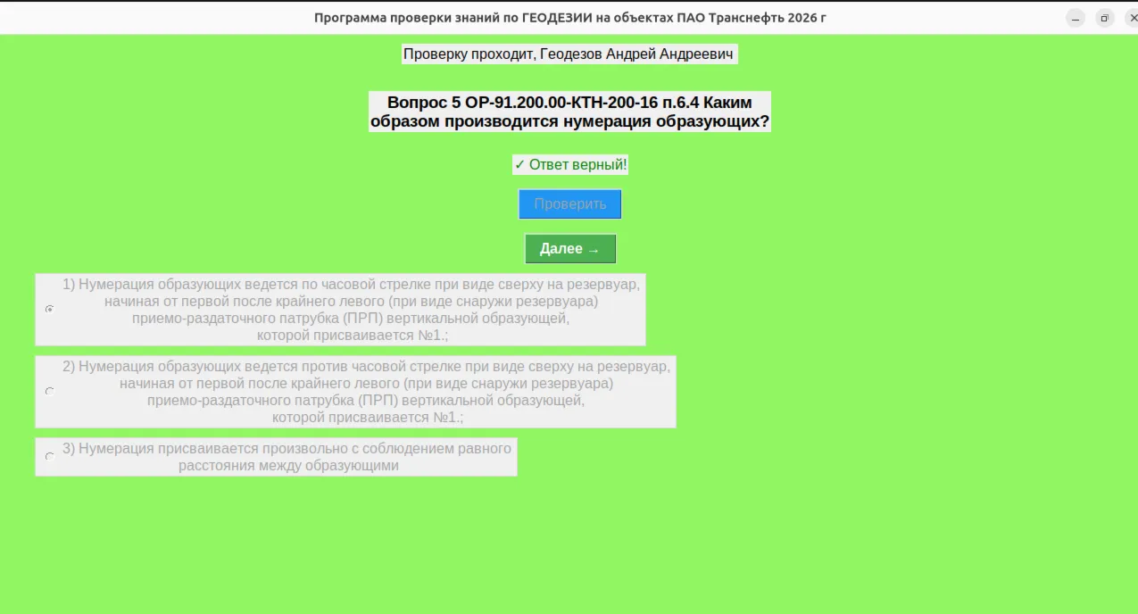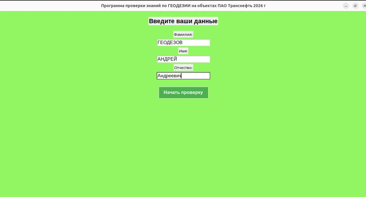 Программа тестирования знаний Инженера строительного контроля на знание ГЕОДЕЗИЧЕСКИХ работ , выполняемых на объектах ПАО "ТрансНефть" начиная с 2026 г.