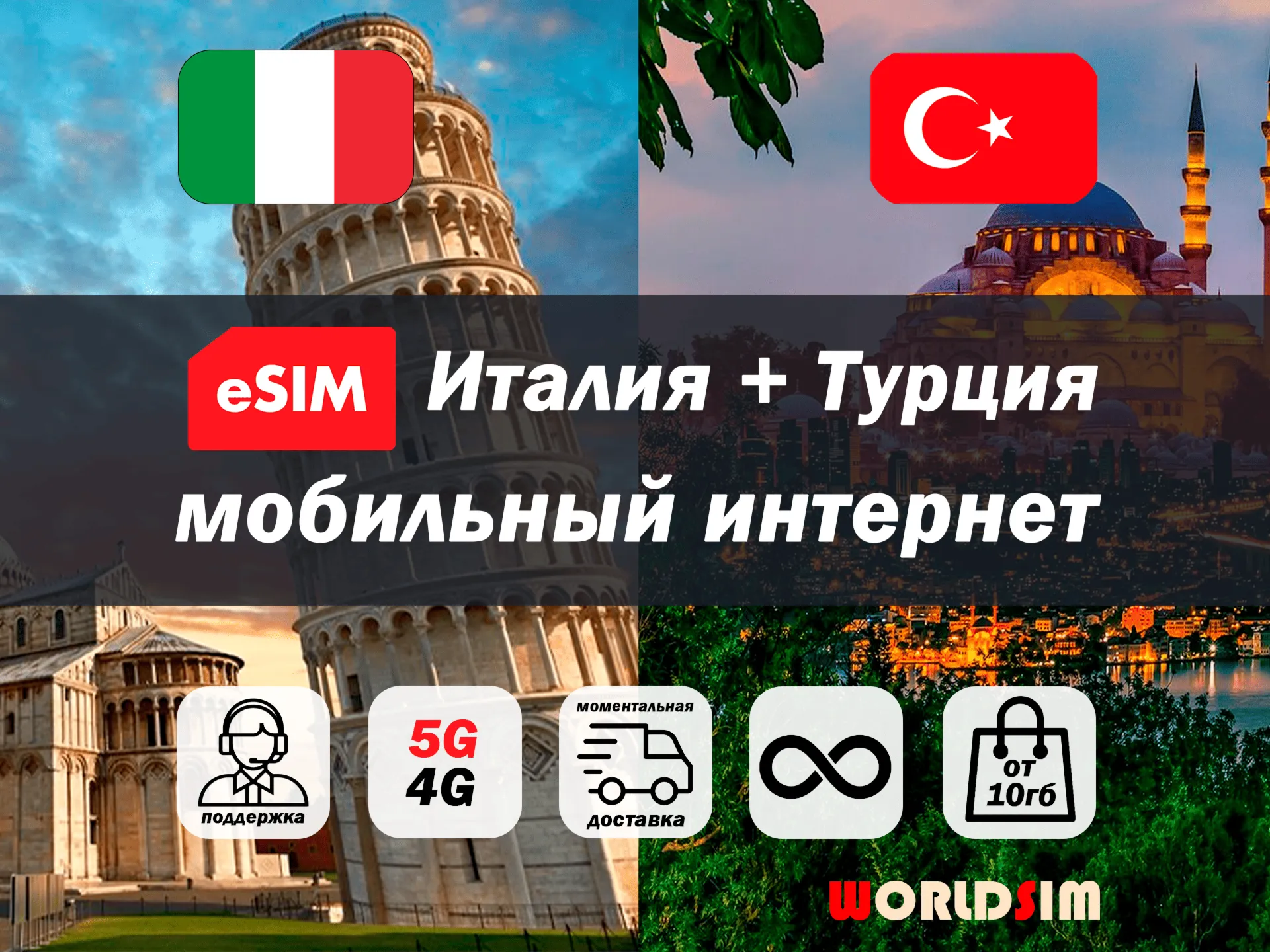 Esim Турция и Италия | 5G/4G | туристическая есим | мобильный интернет