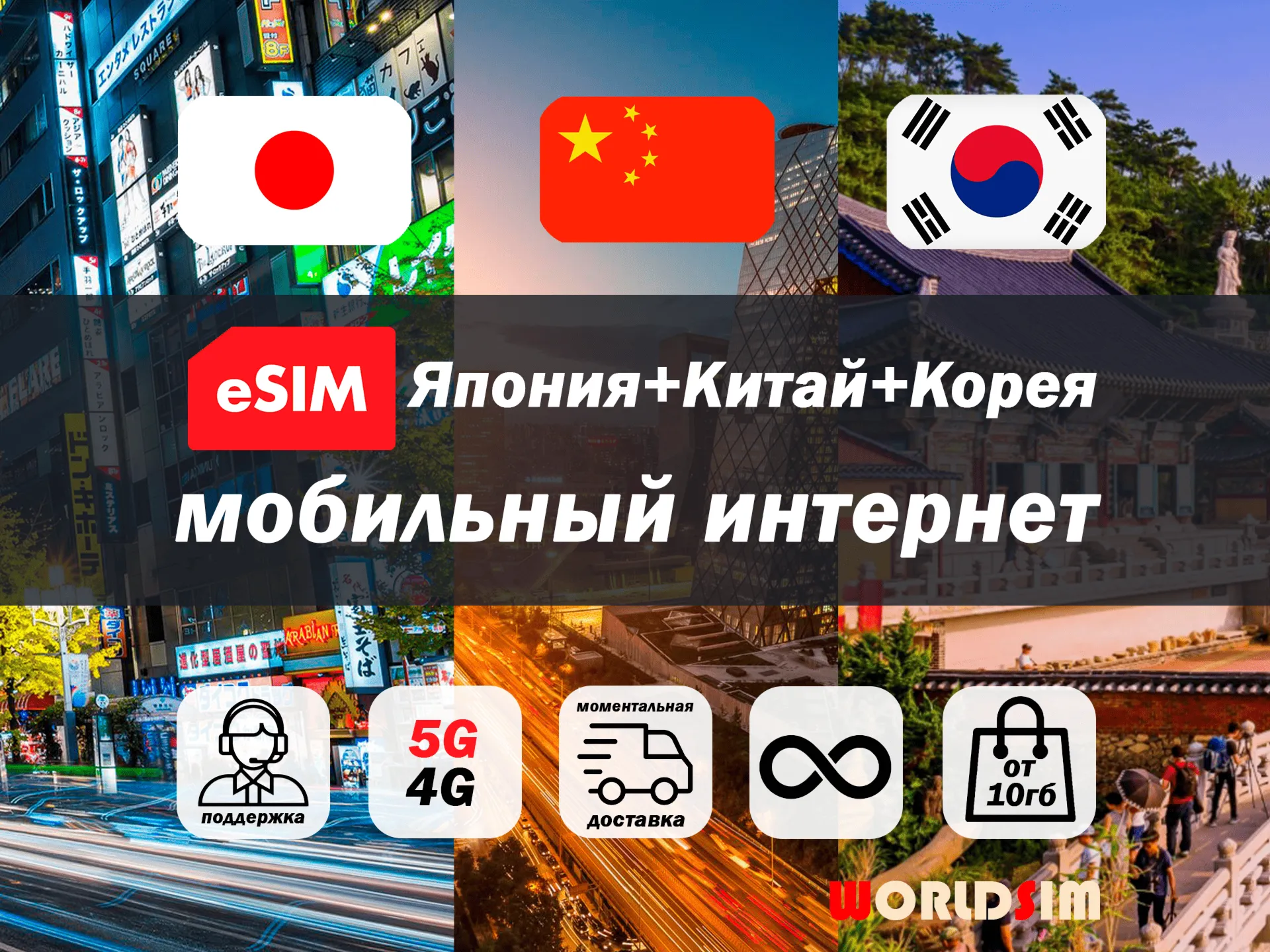 Esim Китай, Япония и Южная Корея | 5G/4G | туристическая есим | мобильный интернет